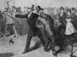 The aspiring assassin spent an entire month following Garfield around Washington, tracking his moves and noticing any vulnerabilities in his routines. On July 2, 1881, Guiteau took a cab to the Baltimore and Potomac Railroad Station where Garfield was scheduled to leave on summer vacation. During the late 1800s, US presidents usually had no bodyguard and no security detail, since private entourage and personal friends were considered adequate protection. Guiteau was able to approach the president in the station waiting room and shoot him from behind, once in the shoulder, and once in the back. A lynch mob quickly formed and surrounded Guiteau, demanding he be hung on the spot. Instead, a group of local police officers arrested him and held him until his trial one month later. His lawyers pled for insanity defense and medical malpractice defense, but Charles Guiteau was found guilty and executed by hanging on June 30th, 1882, about one year after the assassination.