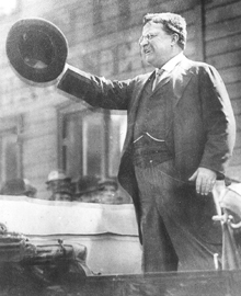 Former president Theodore Roosevelt ran for a third term in 1912, as a member of the Bull Moose Party. Many Americans were upset over the effort to supersede George Washington's tradition of limiting presidents to two terms. One particular person, a saloon keeper from New York named John Schrank, was so incensed that he vowed to kill Roosevelt, to prevent what he thought was a power grab.