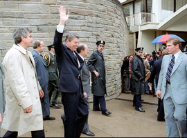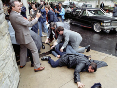 Hinckley, out of ammo, was pushed to the ground and punched, then arrested. Reagan was rushed to the hospital and onto the operating table within minutes. He had trouble breathing, low blood pressure, and went into shock. He slowly recovered, however, partly due to the quick action of doctors, who treated him with intravenous fluids, oxygen, tetanus toxoid and chest tubes. They discovered and removed the bullet. When Nancy Reagan arrived at the ER, the president declared, "Honey, I forgot to duck". The general public was amazed at his such a speedy recovery for a 70-year-old, and he was back in the Oval Office three weeks later. John Hinckley was committed to a mental institution and released in 2016. |