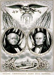 Although the Whigs never took a formal stand on slavery, many party members were abolitionists. The Kansas-Nebraska Act of 1854 changed everything for the Whigs, and party leaders were forced to take sides on slavery, which divided and dissolved the party. They went on to become the Republican Party, headed by Abraham Lincoln. |